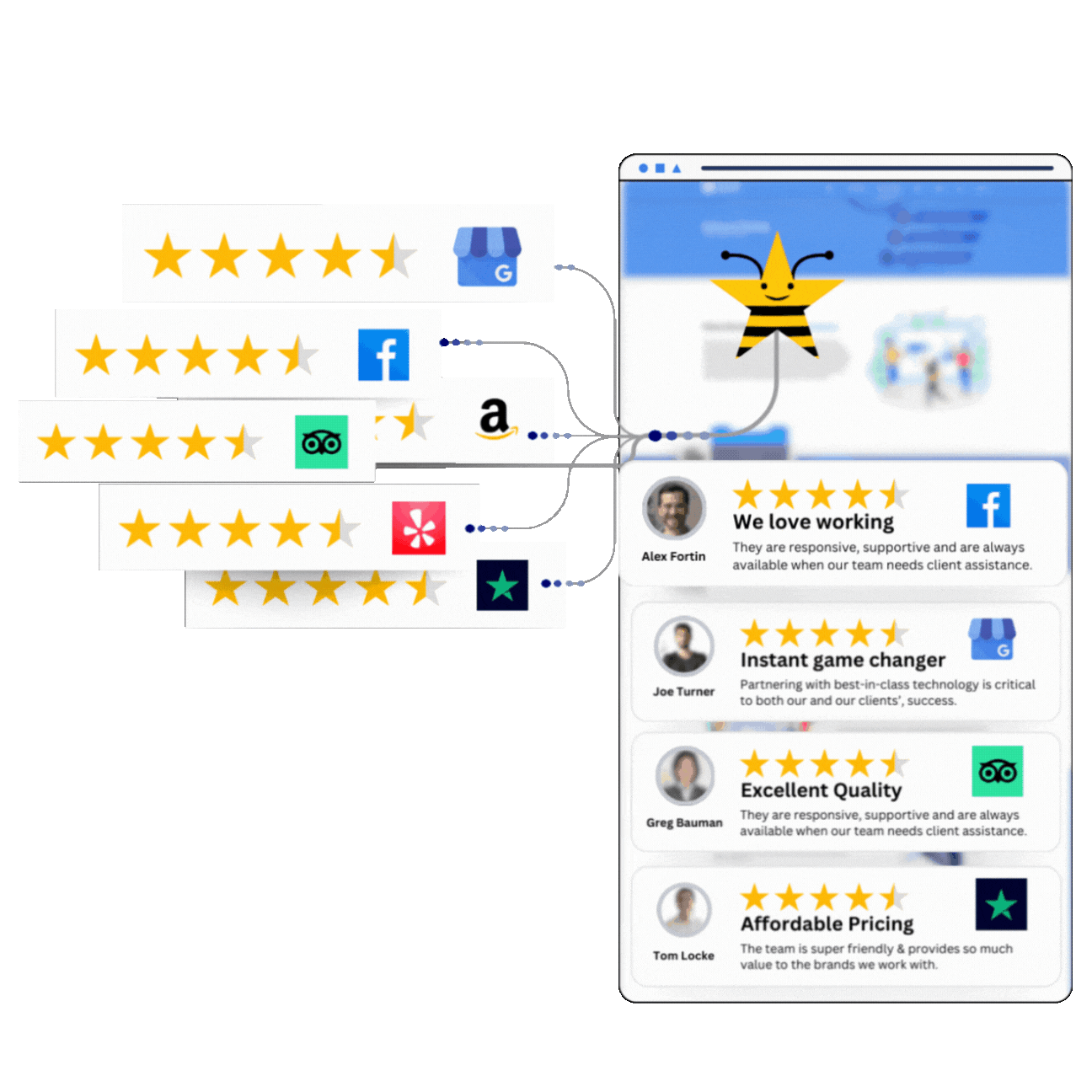 From helping you get found on Google to showing your website visitors you have lots of happy customers, Reviews Bee is here to help.